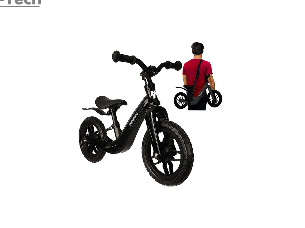 Odrážadlo KRUZZEL pre deti 2+, ľahký detský bicykel, 12" kolesá + ramenný popruh, čierny!