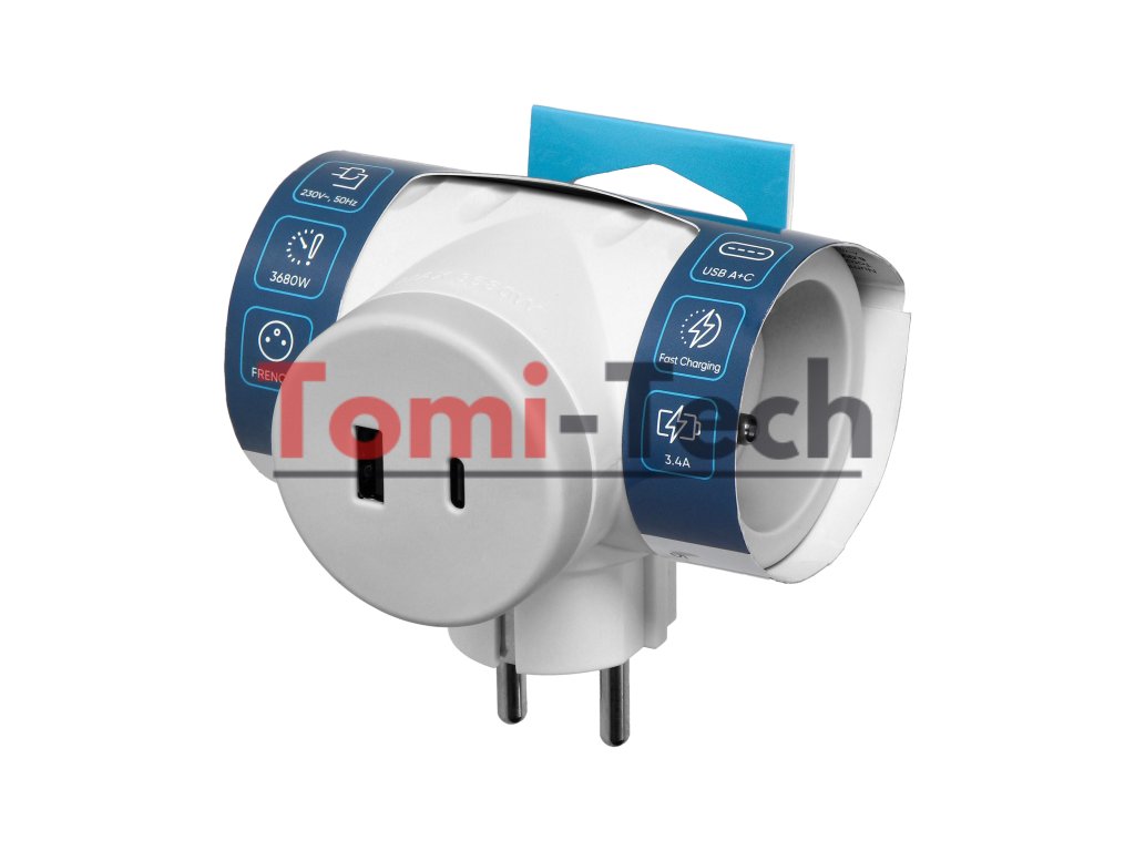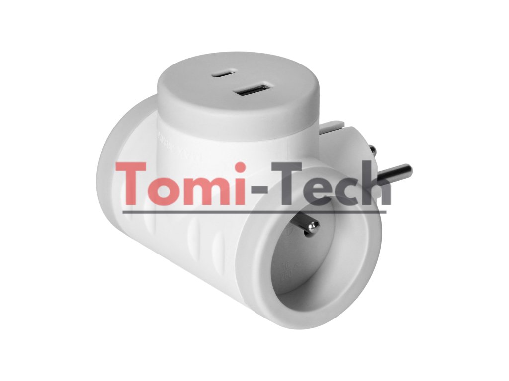 2P+Z rozbočovač s 2xUSB nabíjačkou, rýchle nabíjanie, biely a sivýDodatočné parametre