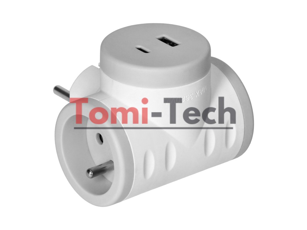 2P+Z rozbočovač s 2xUSB nabíjačkou, rýchle nabíjanie, biely a sivý