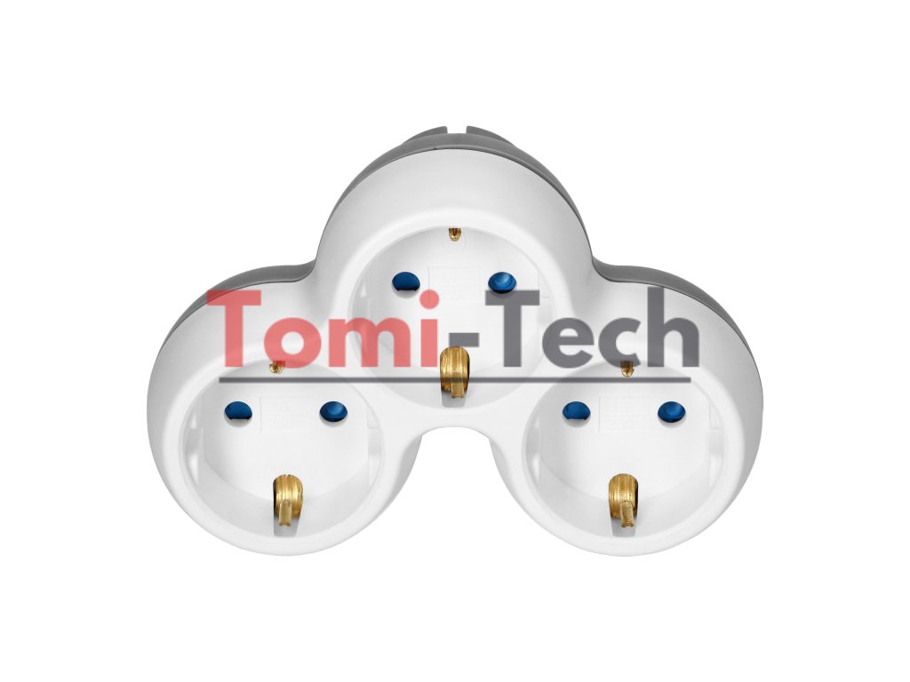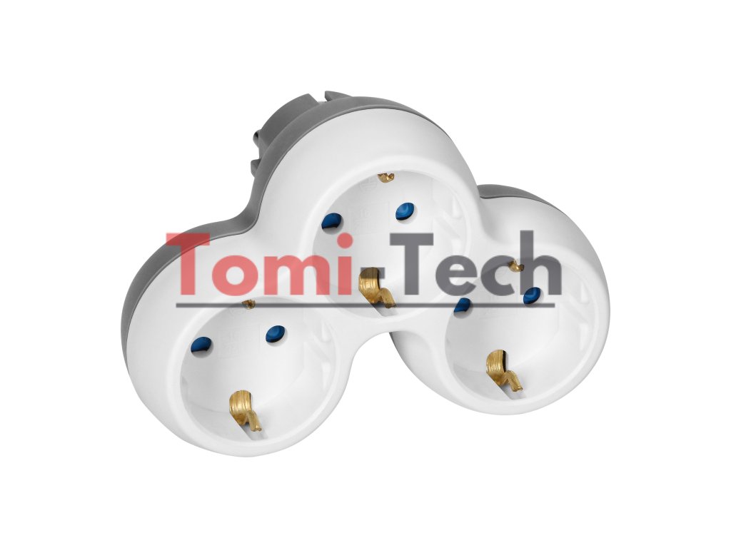 Rozbočovač 3x2P+Z (Schuko), bielo-sivý