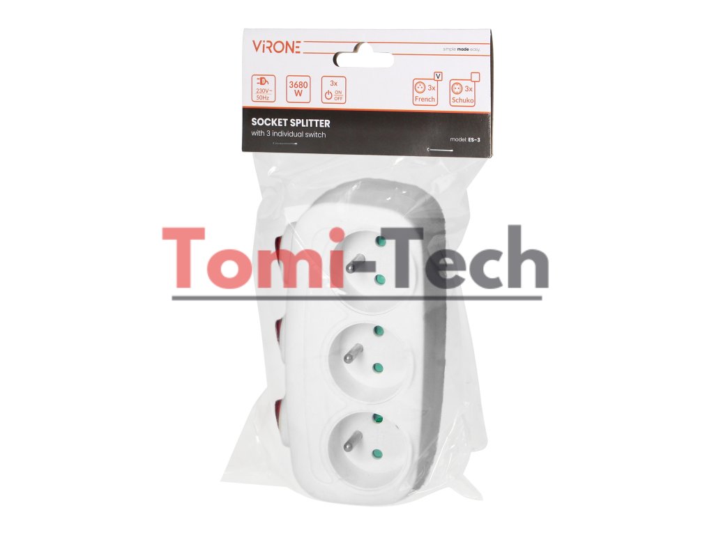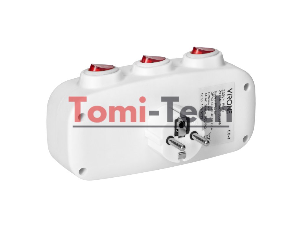 Rozbočovač 3x2P+Z s 3 prepínačmiDodatočné parametre