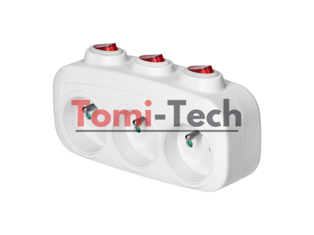 Rozbočovač 3x2P+Z s 3 prepínačmi