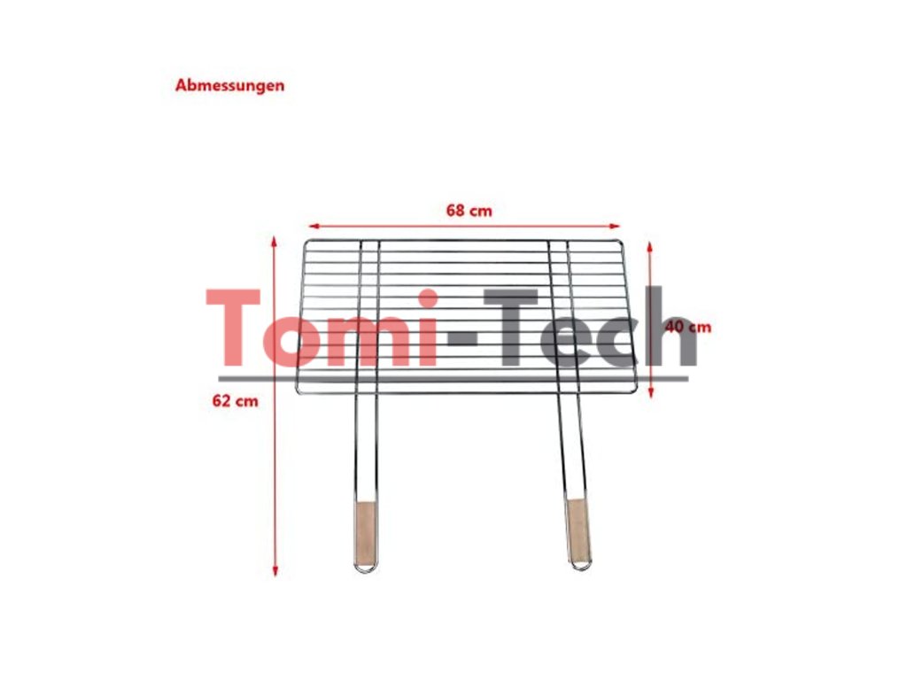 Grilovací rošt Master Grill&Party MG254, rozmery 68 x 40 cm. Rošt je vyrobený z chrómovanej ocele. Rukoväte sú vyrobené z dreva.