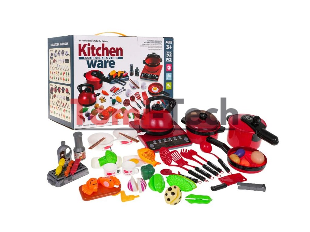 Snívate o dokonalej kuchynskej sade pre vaše deti? Táto červená sada hrncov s kuchynkou je ideálnou voľbou pre deti od 3 rokov. Ponúka celkom 52 rôznych komponentov, vrátane interaktívnej kuchyne, rýchlovarnej kanvice a ďalších kuchynských nástrojov.Táto bohato vybavená kuchynská sada je perfektná pre malých kuchárov. Obsahuje interaktívnu kuchynku na batérie, ktorá vydáva autentické zvuky smaženia a varenia a má podsvietenú varnú zónu s nastaviteľným výkonom.