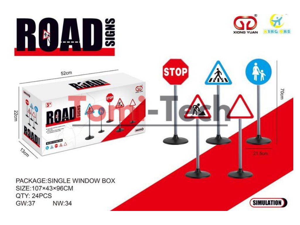 Obsah: značka stop,značka prechodu pre chodcov,značka pre práce na ceste,značka prechodu pre chodcov,,výstražný trojuholník,nálepky na značky.