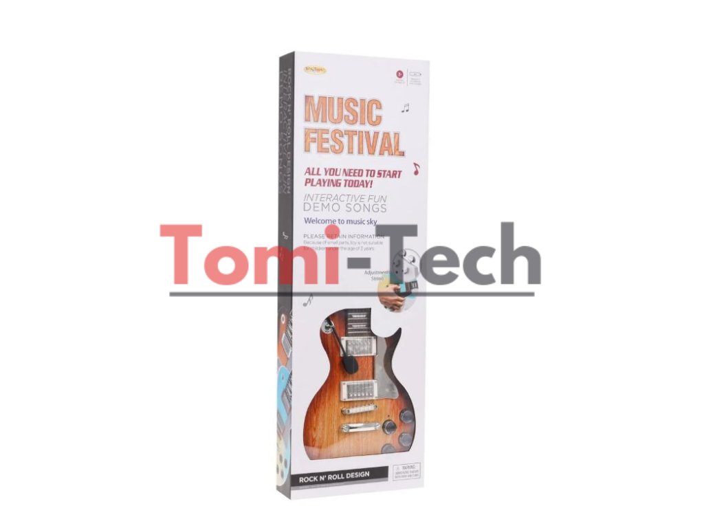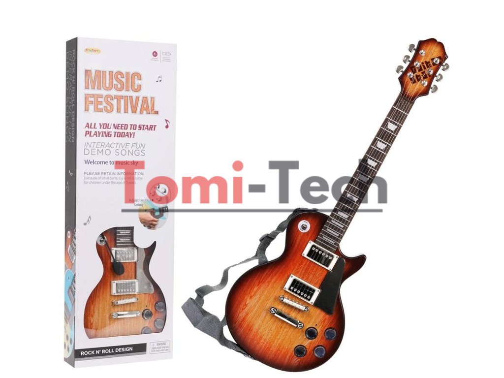 Obsah balenia: Hnedá elektrická gitara, Slúchadlová sada s mikrofónom,Pás