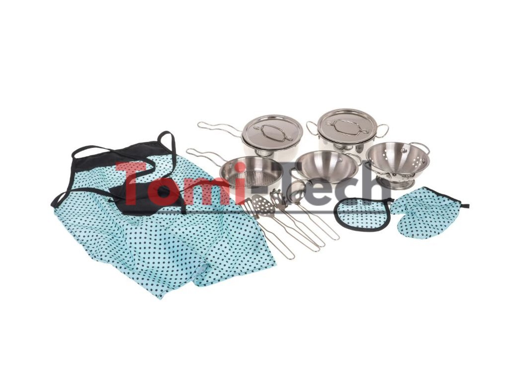 Obsah sady:2x hrniec s pokrievkou, misa, sitko, panvica, cediaca lyžica, lyžica na cestoviny, obracačka, naberačka, podložka pod hrniec, rukavice do rúry, zástera