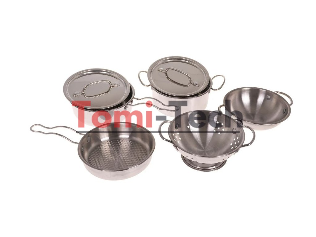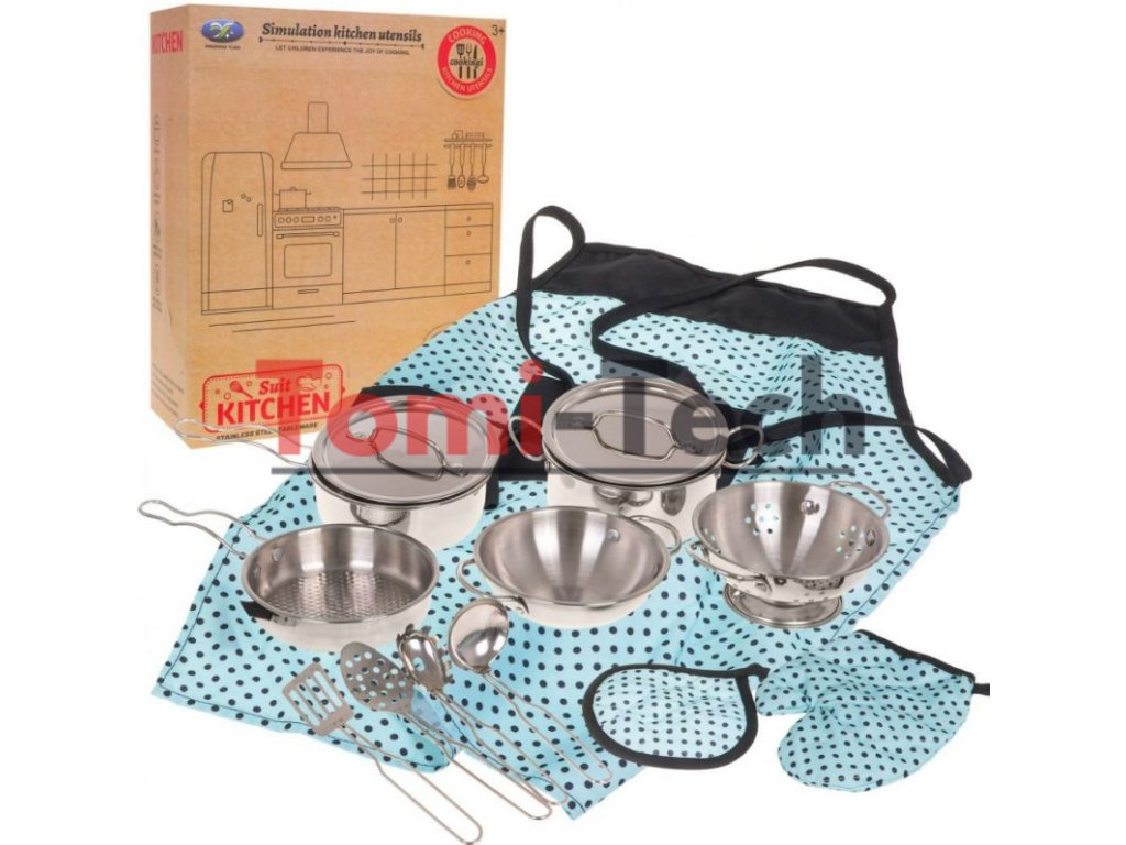 Skvele vyrobená, robustná kovová sada hrncov s príslušenstvom pre deti od 3 rokov . Kovové spracovanie zaručuje pevnosť a robustnosť. Sada sa skladá z hrncov a kuchynského náčinia nevyhnutného pre každú detskú kuchynku.