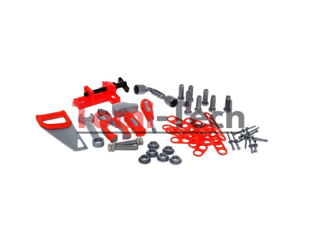 Obsah sady:zverák,píla,kliešte, kľúče,kladivo,skrutkovač,2 nádoby na náradie,6 drievok na zaskrutkovanie skrutiek,10 klincov,2 špendlíky,10 skrutiek,sada samolepiek.