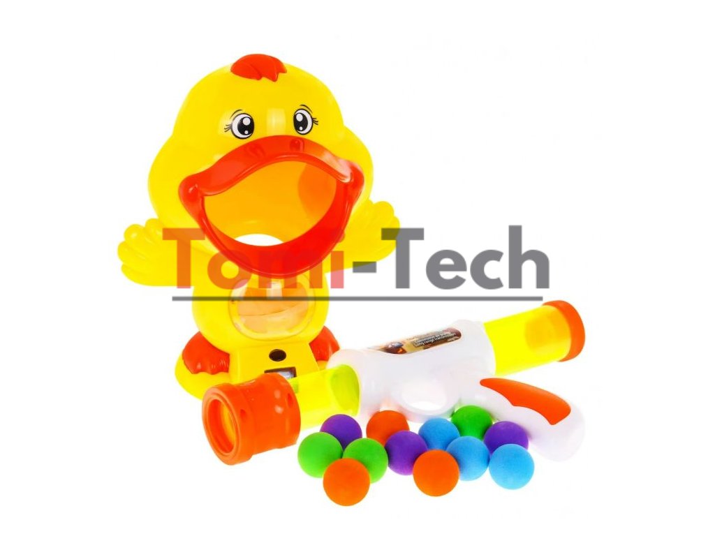 Detská pištoľ s loptičkami a kačicou ako terč. Zbraň nevyžaduje použitie batérií, je poháňaná vzduchom. Stačí dať loptičky do hlavne a napnúť pružinu zatiahnutím za hlaveň. Loptičky sú mäkké a ľahké. Ak sa vám podarí preniknúť do kačacieho zobáka, kačica vydá charakteristický zvuk. Dosiahnuté ciele sa počítajú na LCD obrazovke.Kačica je napájaná 3 x 1,5V batériami AAA.