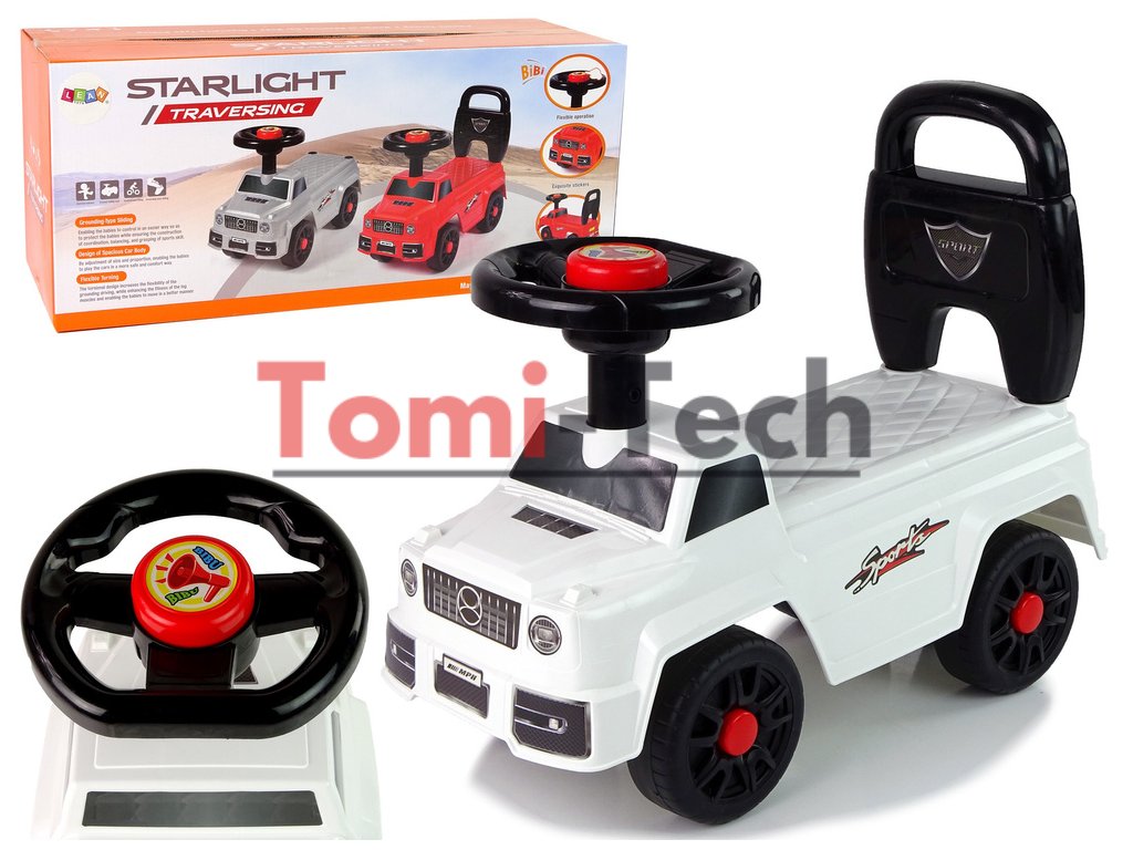 Odrážadlo je multifunkčná hračka pre batoľa. Je určené pre dieťa, ktoré sa dokáže samostatne odraziť od zeme nohami. Autíčko bude rásť s dieťaťom a jeho zručnosťami. Odrážadlo bude perfektné doma aj na dvore či v záhrade. Používanie tohto vozidla pri každodennej hre má pre batoľa obrovský vplyv na jeho vývoj. Odrážadlo podporuje koordináciu mnohých častí tela dieťaťa súčasne, rozvíja svaly a čo je rovnako dôležité – pomáha mu naučiť sa samostatne a stabilne chodiť. Jazda na bielom odrážadle pomôže vášmu dieťaťu pochopiť rýchlosť, vzdialenosť a smer.