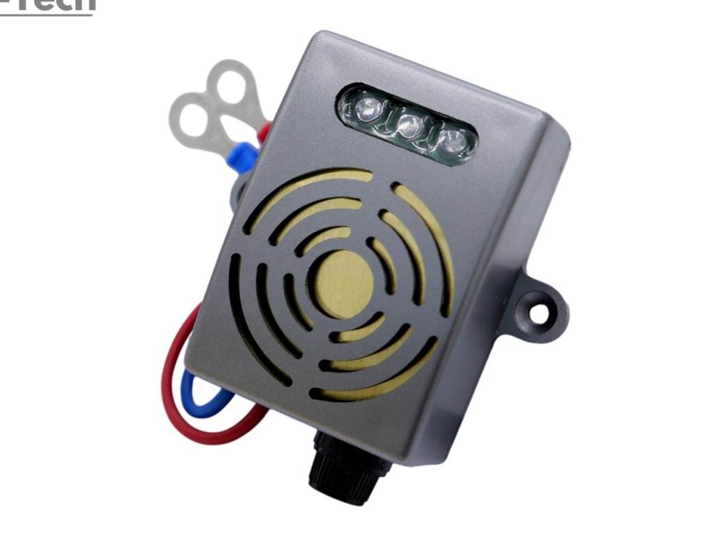 Zariadenie využíva výkonný piezoelektrický reproduktor vyrobený z mosadze, dodatočne chránený krytom. Piezoelektrické reproduktory vyrobené z mosadze sa vyznačujú vysokou odolnosťou voči faktorom nachádzajúcim sa v motorovom priestore, ako sú nízke a vysoké teploty a vlhkosť.