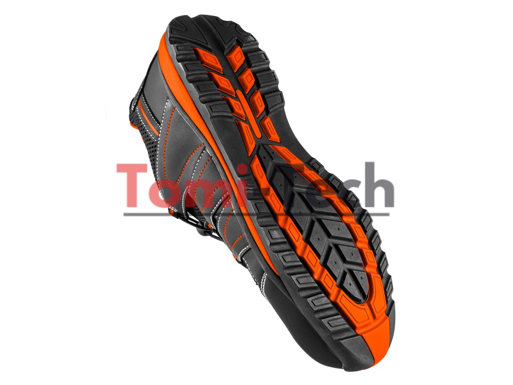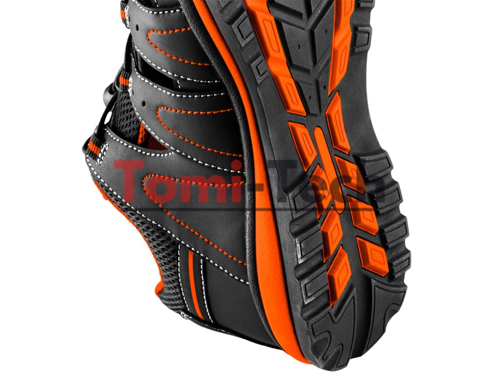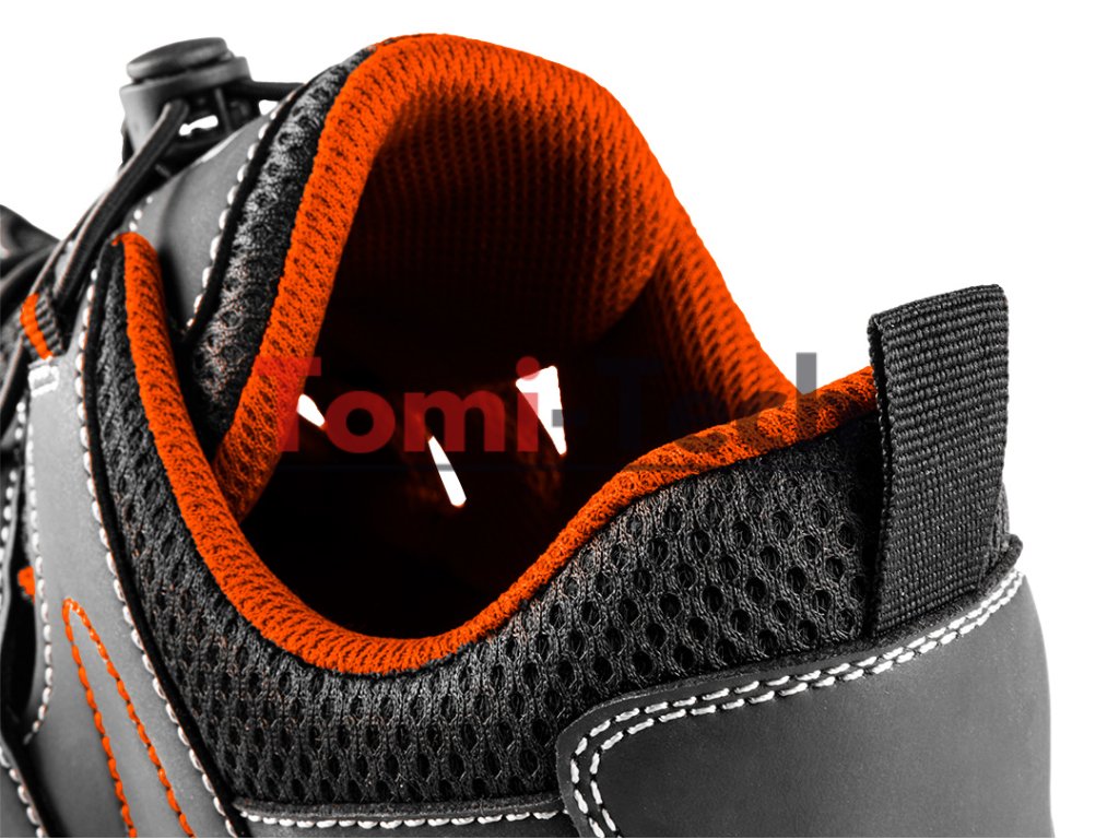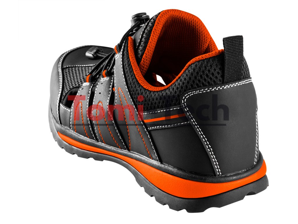 Pracovné sandále S1 SRA, kompozitná špička, sieťovina potiahnutá PU, dvojvrstvová podrážka z EVA a gumy, kompozitná špička, topánka vyrobená v kategórii S1 SRA (odolnosť proti pošmyknutiu SRA na keramických povrchoch potiahnutých roztokom laurylsulfátu sodného (SLS)), protišmyková podrážka s tlmiacim systémom, odolná voči oderu, olejom, benzínu a iným organickým rozpúšťadlám, antistatická stielka, sťahovacie šnúrky, zaujímavý, módny vzhľad, veľkosť 41Dodatočné parametre
