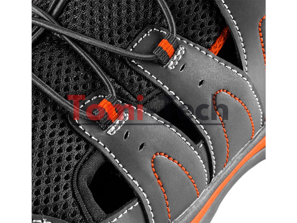 Pracovné sandále S1 SRA, kompozitná špička, sieťovina potiahnutá PU, dvojvrstvová podrážka z EVA a gumy, kompozitná špička, topánka vyrobená v kategórii S1 SRA (odolnosť proti pošmyknutiu SRA na keramickom povrchu potiahnutom roztokom laurylsulfátu sodného (SLS)), protišmyková podrážka s tlmiacim systémom, odolná voči oderu, olejom, benzínu a iným organickým rozpúšťadlám, antistatická stielka, sťahovacie šnúrky, zaujímavý, módny vzhľad, veľkosť 46Dodatočné parametre