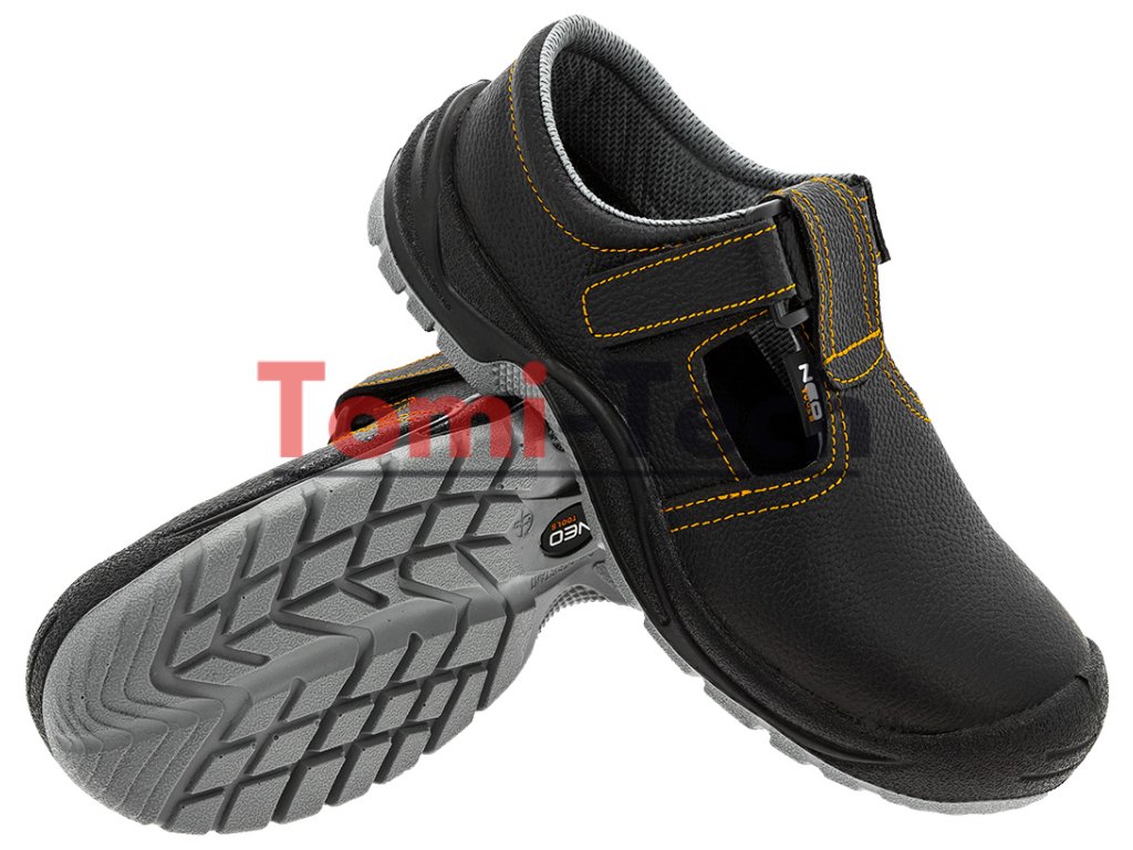 Kožené pracovné sandále, S1 SRC, obuv vyrobená v kategórii S1 SRC (SRC - odolnosť proti pošmyknutiu na keramickom povrchu potiahnutom roztokom laurylsulfátu sodného (SLS) a na oceľovom povrchu potiahnutom glycerolom), bez kovových prvkov, protišmyková podrážka s tlmiacim systémom, odolná voči oderu, olejom, benzínu a iným organickým rozpúšťadlám, uzavretá päta, antistatická stielka, veľkosť 41Dodatočné parametre