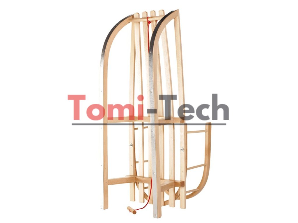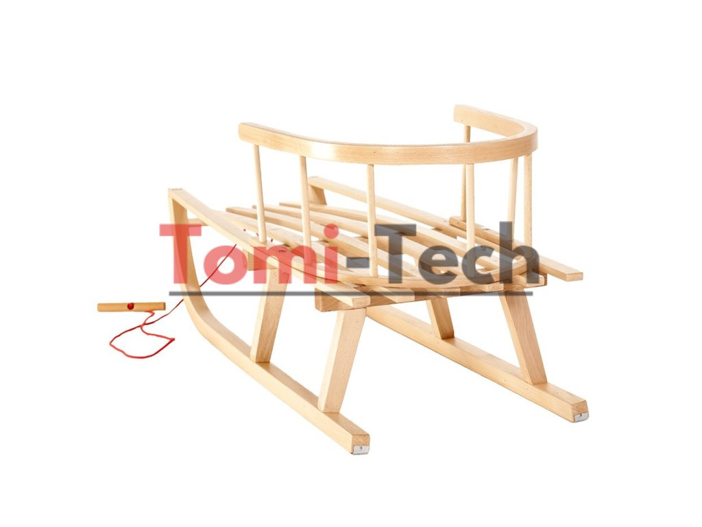 Masívne vyrobené drevené sane s operadlom. Hrubé, pevné priečky a robustná konštrukcia zaručujú, že sane vydržia oveľa dlhšie ako jednu sezónu.
