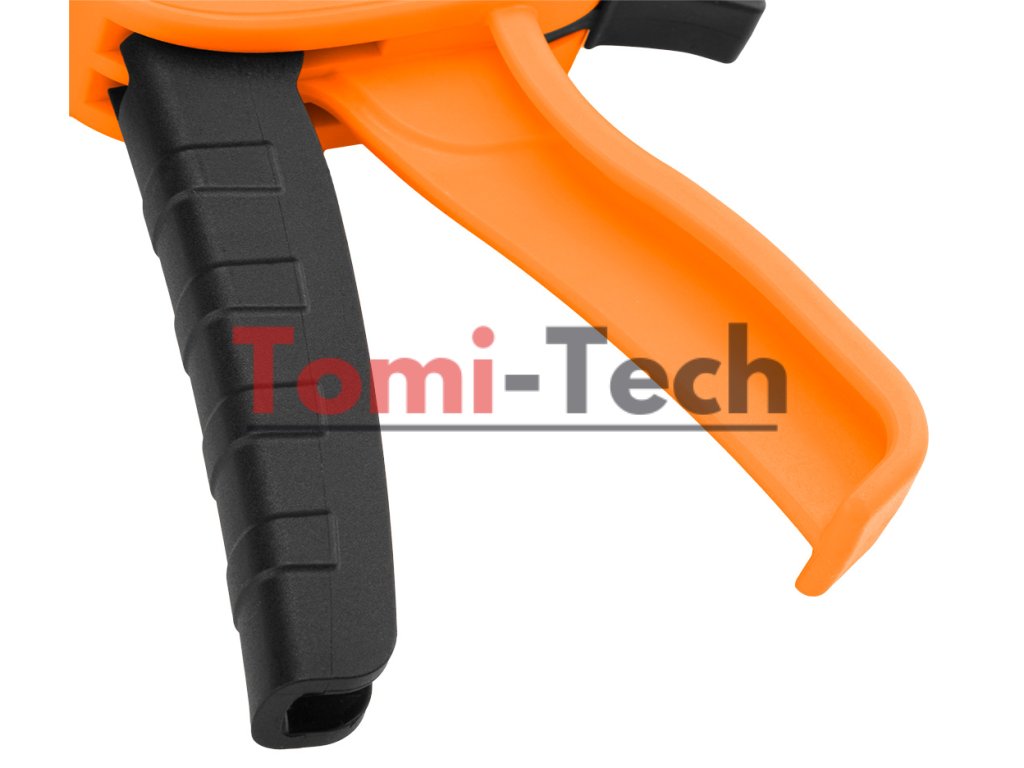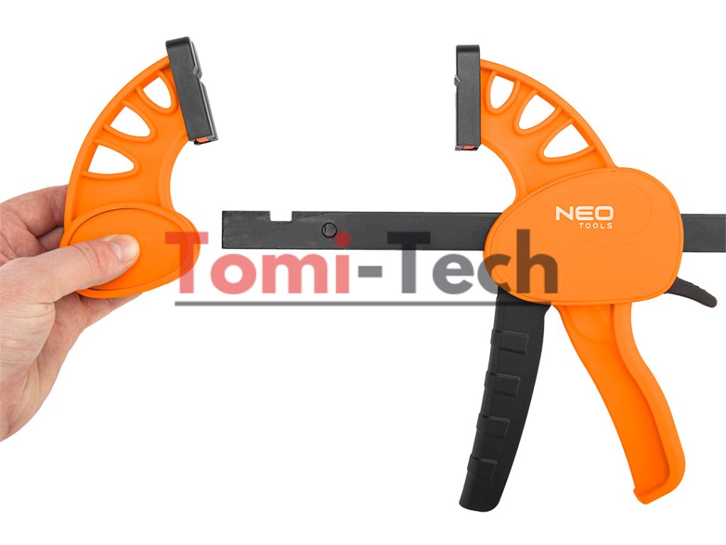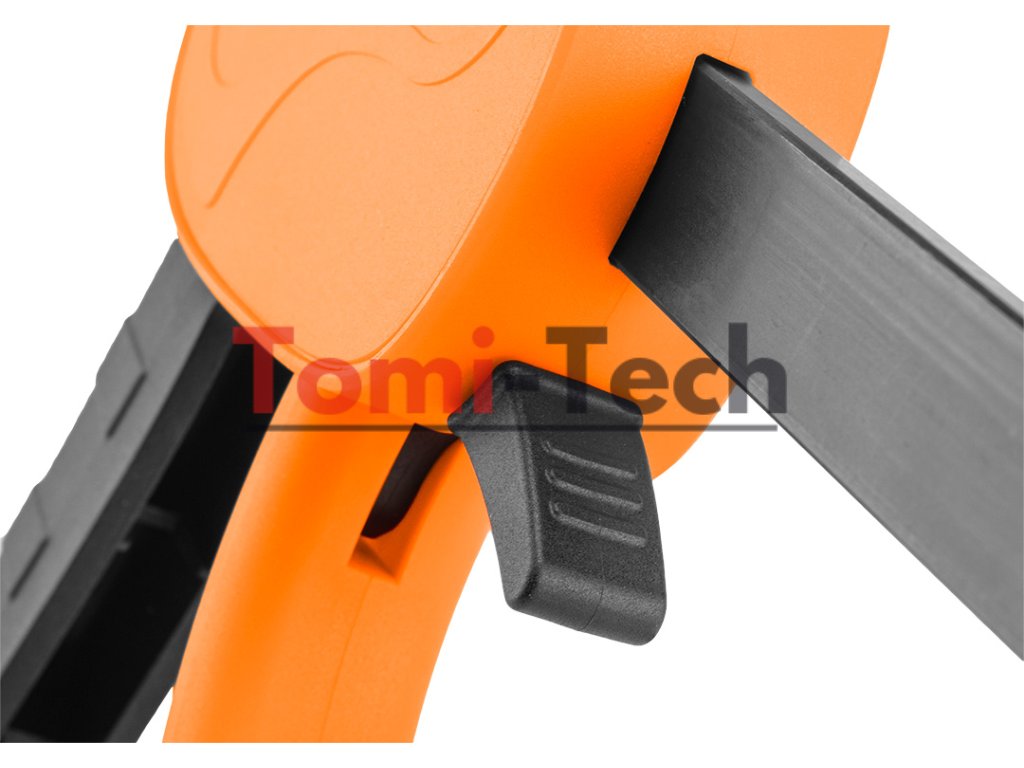 Automatická vysokovýkonná svorka 75x750 mm, upínacia sila do 135 kg, zosilnená pištoľová rukoväť, rýchle zatváranie čeľustí, otočné čeľuste - možnosť rozšírenia, gumené podložky, vedenie z kalenej oceleDodatočné parametre