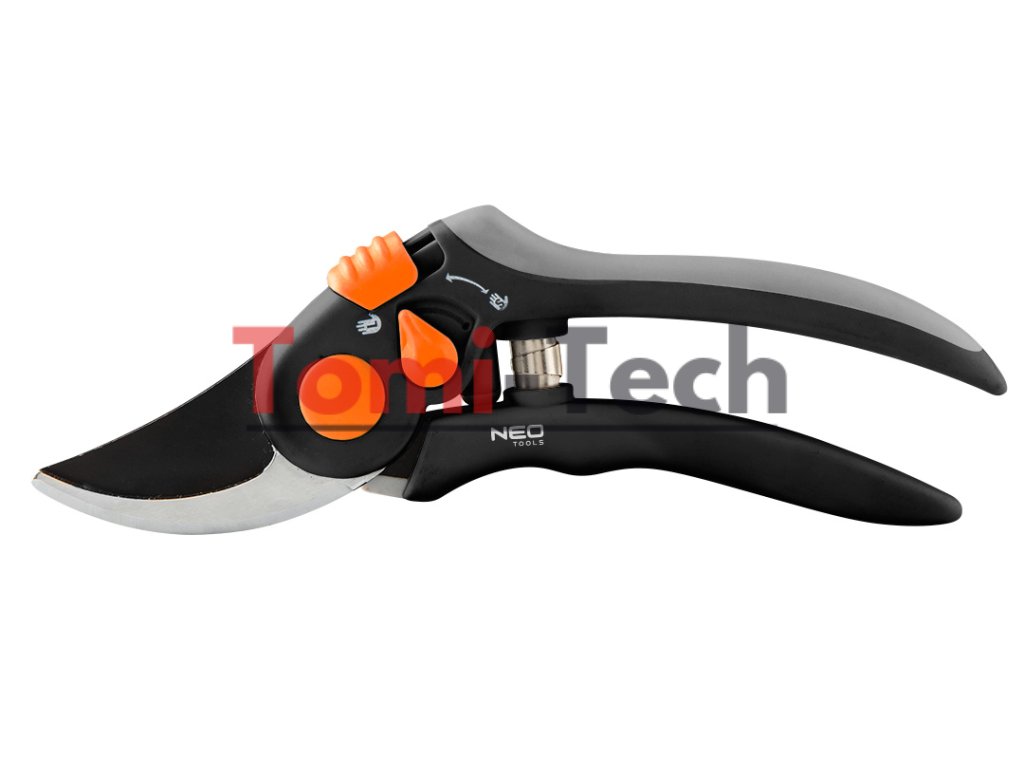 Obtokové nožnice, celková dĺžka 200 mm, maximálny priemer rezu 18 mm, ergonomicky tvarovaná rukoväť s mäkkými gumovými úchytkami TPR pre lepší úchop a pohodlie, jednoduchá a bezpečná aretácia palcom pre pravákov aj ľavákov, nastaviteľná rozostupnosť čepelí, čepele vyrobené z vysoko kvalitnej kalenej ocele, čepele s nepriľnavým povlakom, čepeľ na čerstvé drevo,Dodatočné parametre