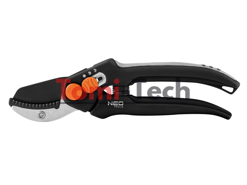 Nákovkové nožnice, nastaviteľná rozostupnosť, celková dĺžka 185 mm, maximálny priemer rezu 15 mm, nastaviteľná rozstupnosť čepelí, čepele s nepriľnavým povlakom, ergonomická rukoväť s mäkkými prvkami, nákovková čepeľ na tvrdé a suché drevo,Dodatočné parametre