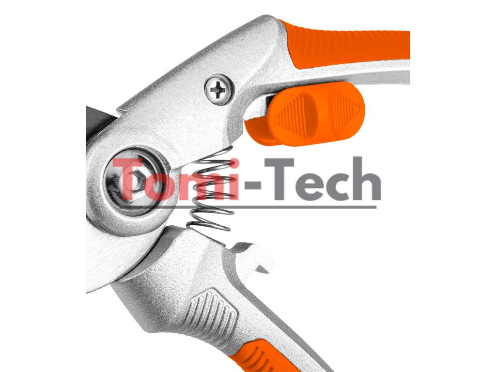 Nákovkové nožnice, celková dĺžka 210 mm, maximálny priemer rezu 20 mm, odolné oceľové čepele s nepriľnavým povlakom, ergonomická hliníková rukoväť s mäkkými TPR prvkami, nákovková čepeľ na tvrdé a suché drevo, aretácia čepeleDodatočné parametre