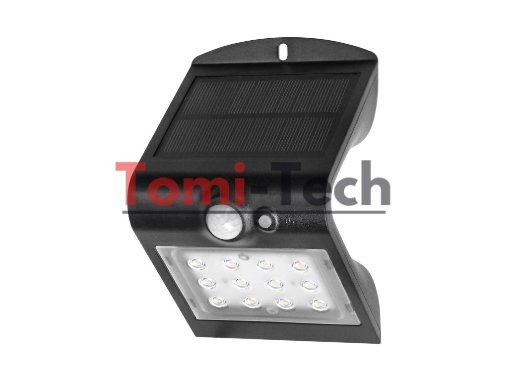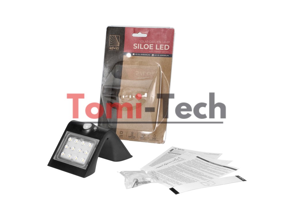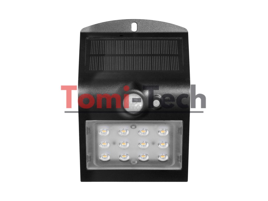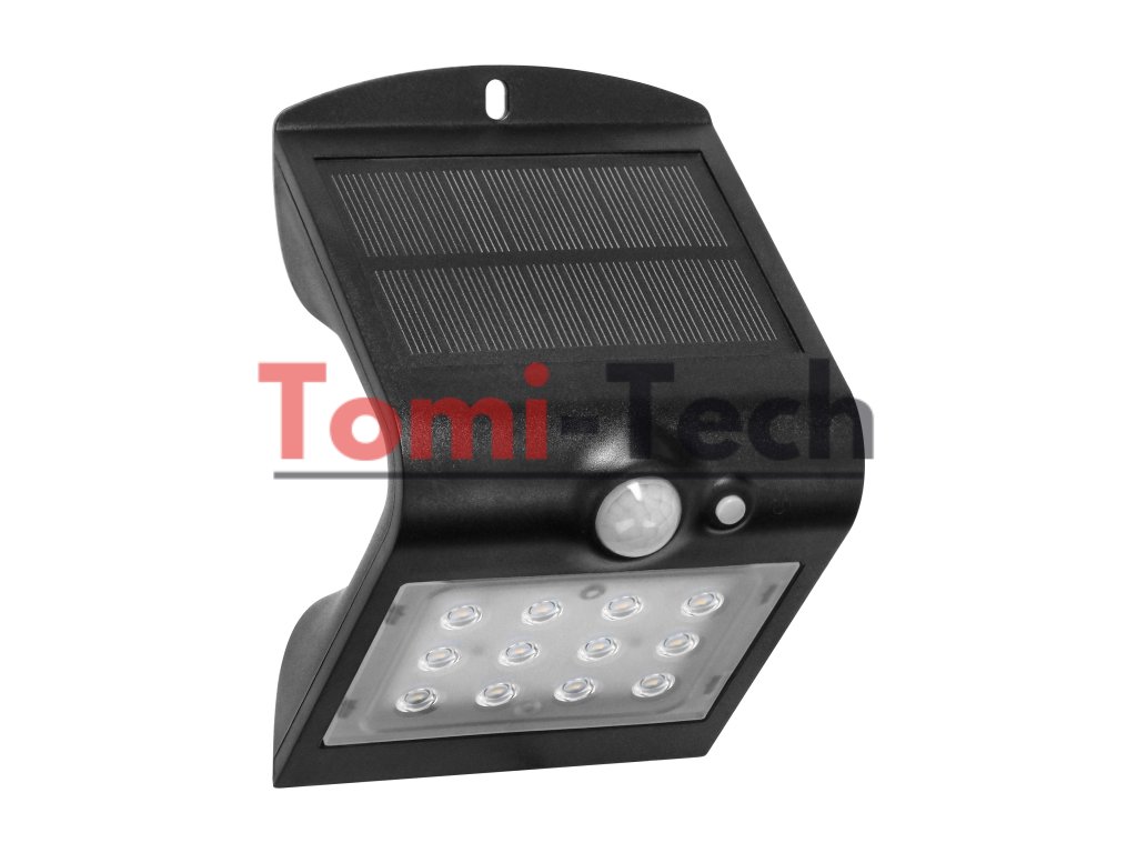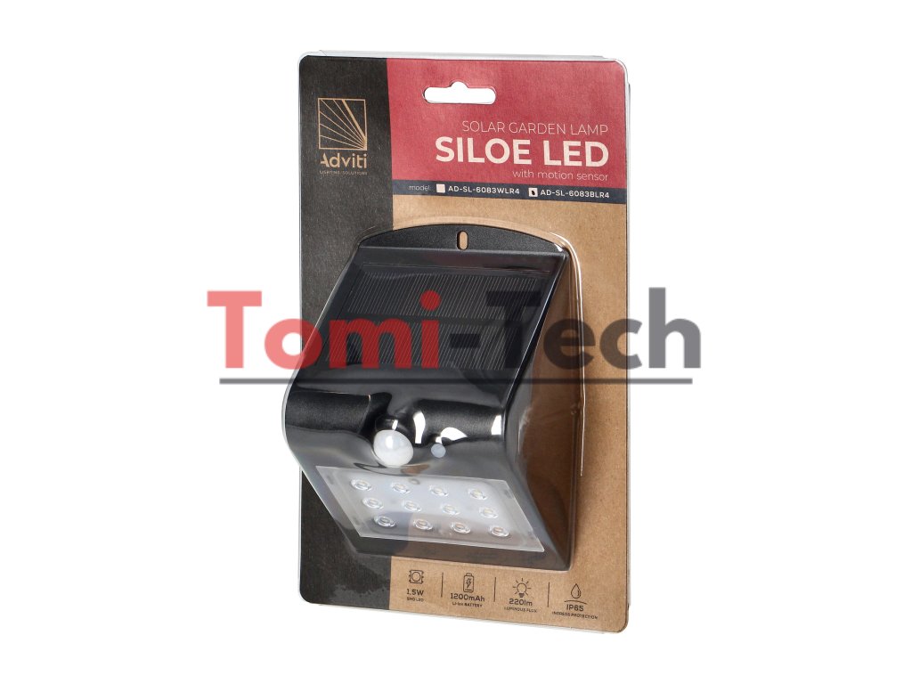 SILOE LED 1,5W, solárna lampa s pohybovým senzorom 120°, 190lm, IP65, 4000K, 1200mAh, dvojitý svetelný zdroj, čierna
