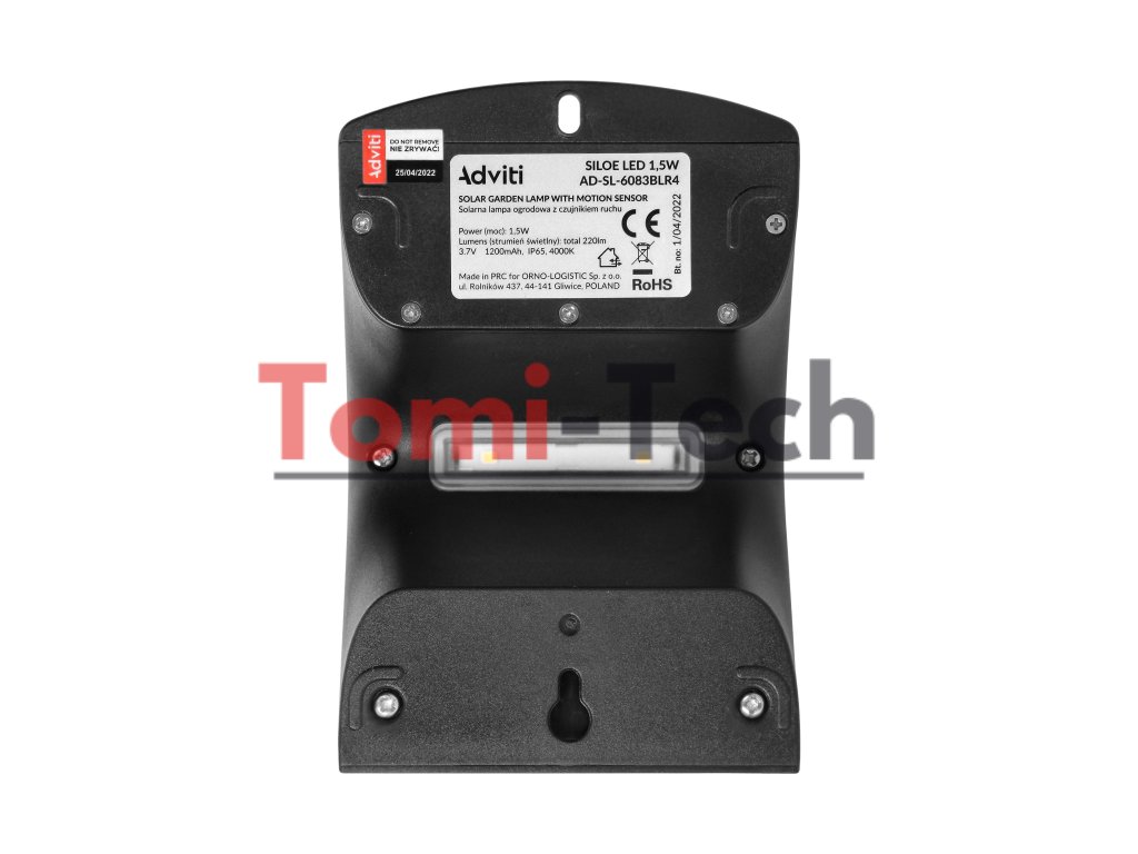 SILOE LED 1,5W, solárna lampa s pohybovým senzorom 120°, 190lm, IP65, 4000K, 1200mAh, dvojitý svetelný zdroj, čiernaDodatočné parametre