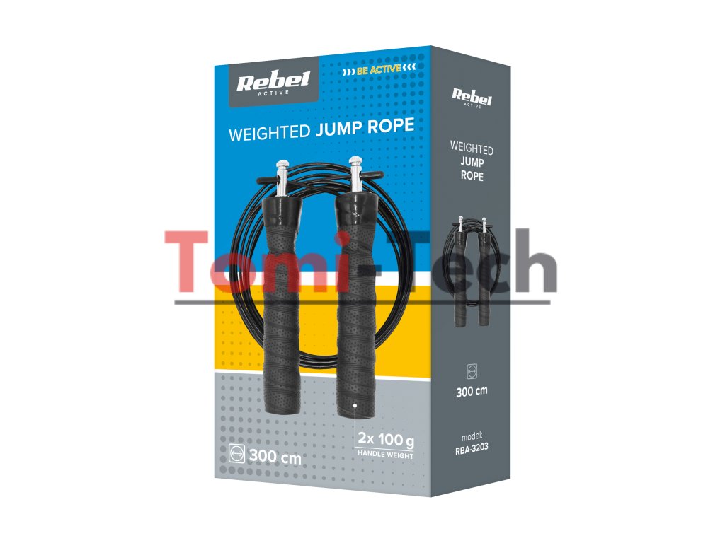 Boxerské švihadlo s gumenou rukoväťou, závažím 2x100g a kovovým ložiskom, nastaviteľná dĺžka 300cm, REBEL ACTIVE