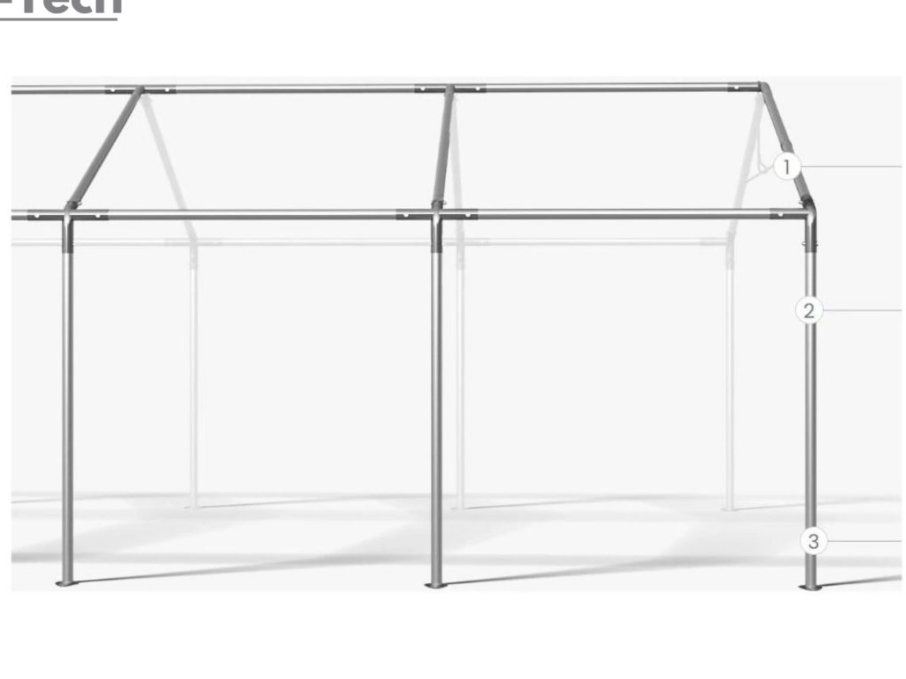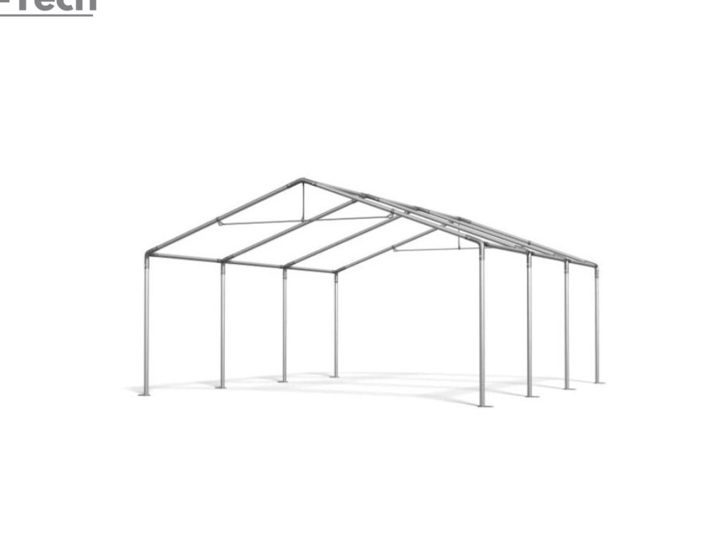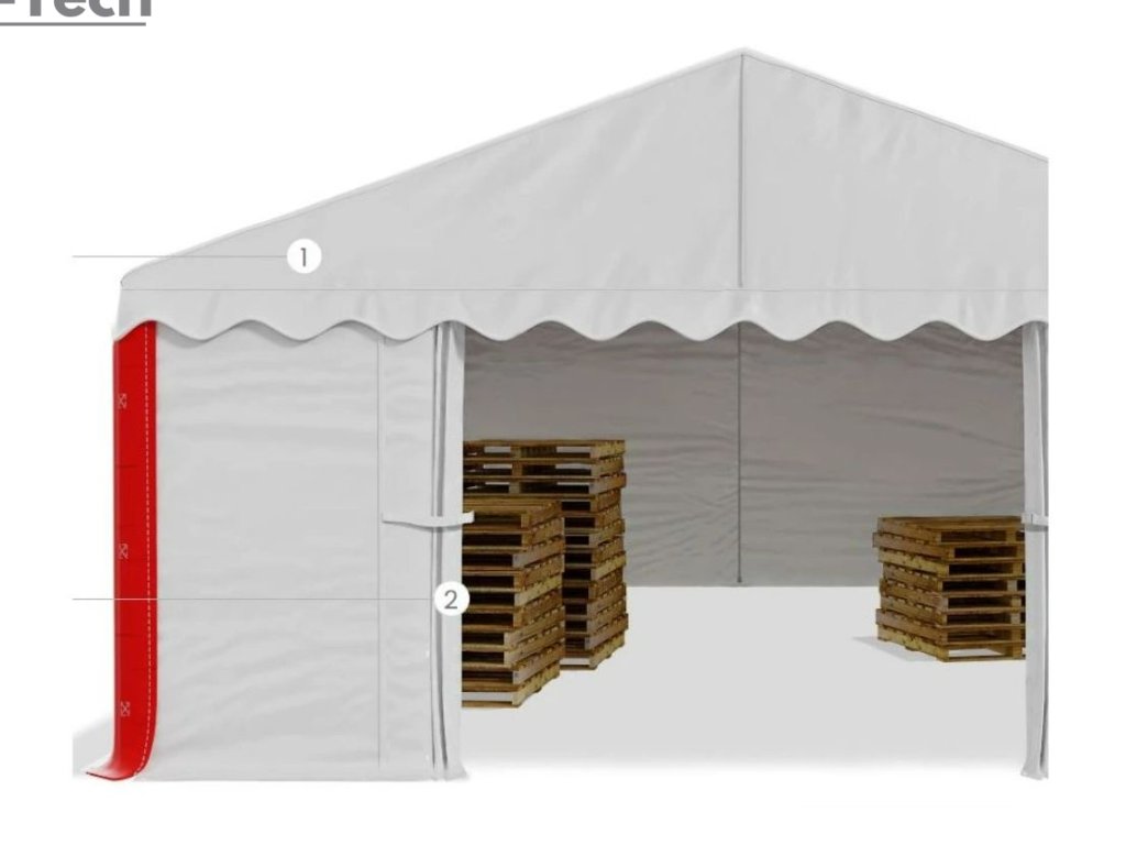 Skladová hala/garáž 3x6m s výškou boku 2m s pevnou oceľovou konštrukciou a stanom z kvalitného polyetylénu. Hrubá oceľová konštrukcia zabezpečuje odolnosť proti poveternostným podmienkam, stan je vyrobený z ľahkého materiálu, ktorý je veľmi odolný voči UV žiareniu, vode a plesniam.