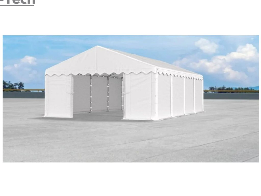 Skladová hala/garáž 4x8m s výškou boku 2m s pevnou oceľovou konštrukciou a stanom z kvalitného polyetylénu. Hrubá oceľová konštrukcia zabezpečuje odolnosť proti poveternostným podmienkam, stan je vyrobený z ľahkého materiálu, ktorý je veľmi odolný voči UV žiareniu, vode a plesniam. Jednou z hlavných výhod skladovej haly/garáže je veľký priestor, ktorý poskytuje. Bez ohľadu na to, či potrebujete skladovať záhradné náradie, stavebný materiál, vozidlá alebo iné predmety, skladová hala/garáž vám ponúka dostatočný priestor pre vaše potreby. Skladová hala/garáž tiež poskytuje ochranu pred nepriaznivými poveternostnými podmienkami. Je vyrobená z kvalitných a odolných materiálov, ktoré sú odolné voči dažďu, vetru, snehu a iným poveternostným vplyvom.