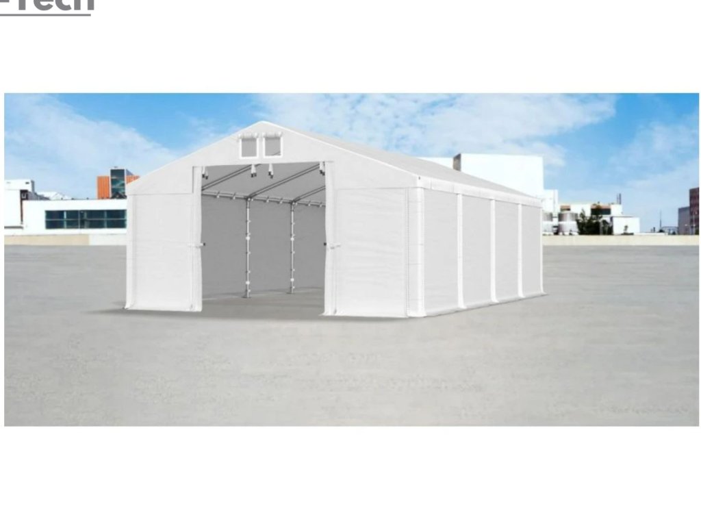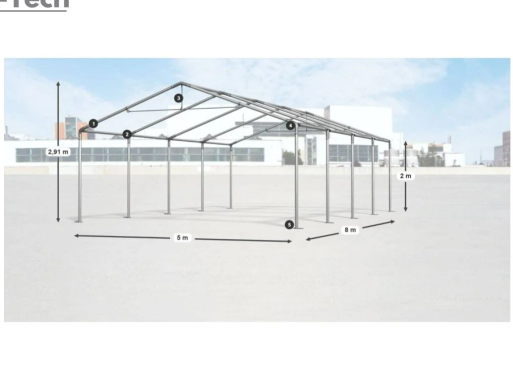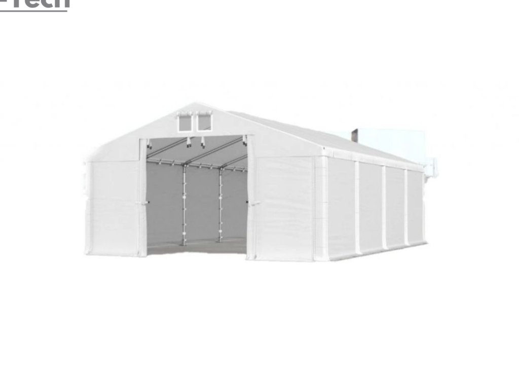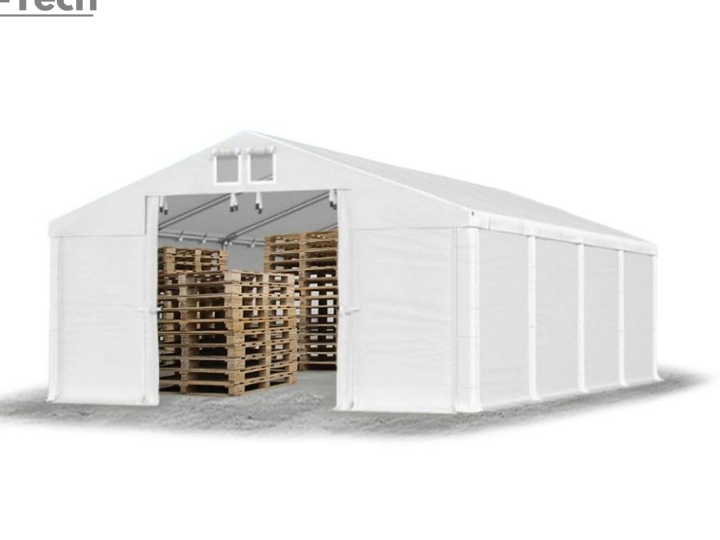 Skladová hala/garáž 5x8m s výškou boku 2m s pevnou oceľovou konštrukciou a stanom z kvalitného PVC (polyvinylchlorid) 560g/m2. Hrubá oceľová konštrukcia zabezpečuje odolnosť proti poveternostným podmienkam, stan je vyrobený z ľahkého materiálu, ktorý je veľmi odolný voči UV žiareniu, vode a plesniam. Jednou z hlavných výhod skladovej haly/garáže je veľký priestor, ktorý poskytuje. Bez ohľadu na to, či potrebujete skladovať záhradné náradie, stavebný materiál, vozidlá alebo iné predmety, skladová hala/garáž vám ponúka dostatočný priestor pre vaše potreby. Skladová hala/garáž tiež poskytuje ochranu pred nepriaznivými poveternostnými podmienkami. Je vyrobená z kvalitných a odolných materiálov, ktoré sú odolné voči dažďu, vetru, snehu a iným poveternostným vplyvom.