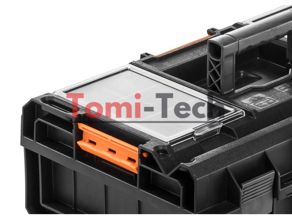Modulárny box 200 (ref. č. 84-255) dva organizéry vo veku, 2 nastaviteľné priehradky, polykarbonátové veká s obmedzovačmi, pevné uzávery, pevná rukoväť, tesnenie vo veku, odolnosť voči prachu a vode, modulárna konštrukcia, výstužné rebrá, 6 vedier, výrez s mierkou, nosnosť 50 kg, vonkajšie rozmery: 585x385x190 mm, vnútorné rozmery: 519x305x97 mmDodatočné parametre