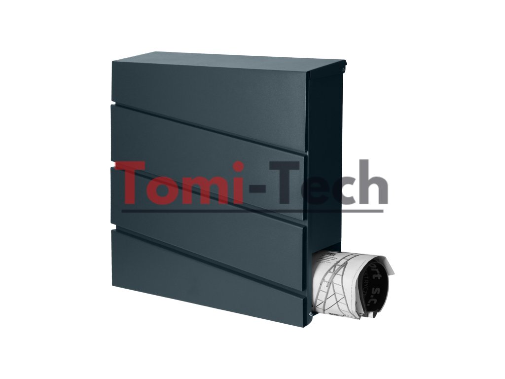 Moderná poštová schránka s pútavým dizajnom. Vhodná na inštaláciu v interiéri aj exteriéri na fasády alebo ploty, veľká veľkosť poskytuje dostatok priestoru a pohodlne sa do nej zmestí korešpondencia formátu A4. Spodná časť schránky má drenážne otvory, ktoré umožňujú odvádzanie vlhkosti a chránia poštu pred navlhnutím. Práškovo lakované pozinkované oceľové puzdro zaručuje odolnosť voči nepriaznivým poveternostným podmienkam. Poštová schránka je vybavená pohodlným ovládaním kľúčmi (dva kusy sú súčasťou balenia) a držiakom na noviny.Dodatočné parametre