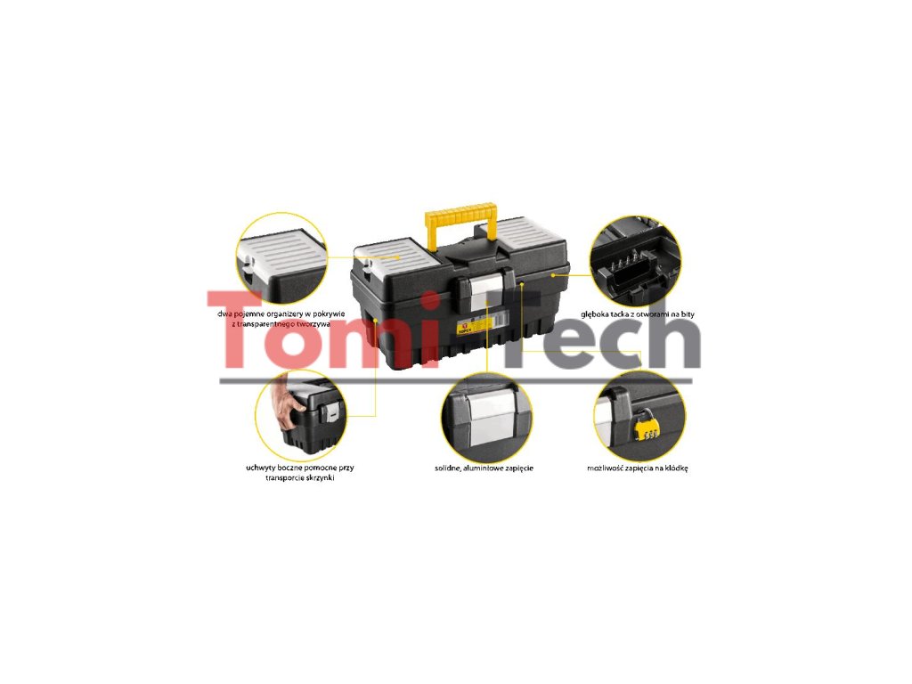 15" box na náradie, organizéry, nosič, hliníkové západky, plastová rukoväť, bočné rukoväteDodatočné parametre