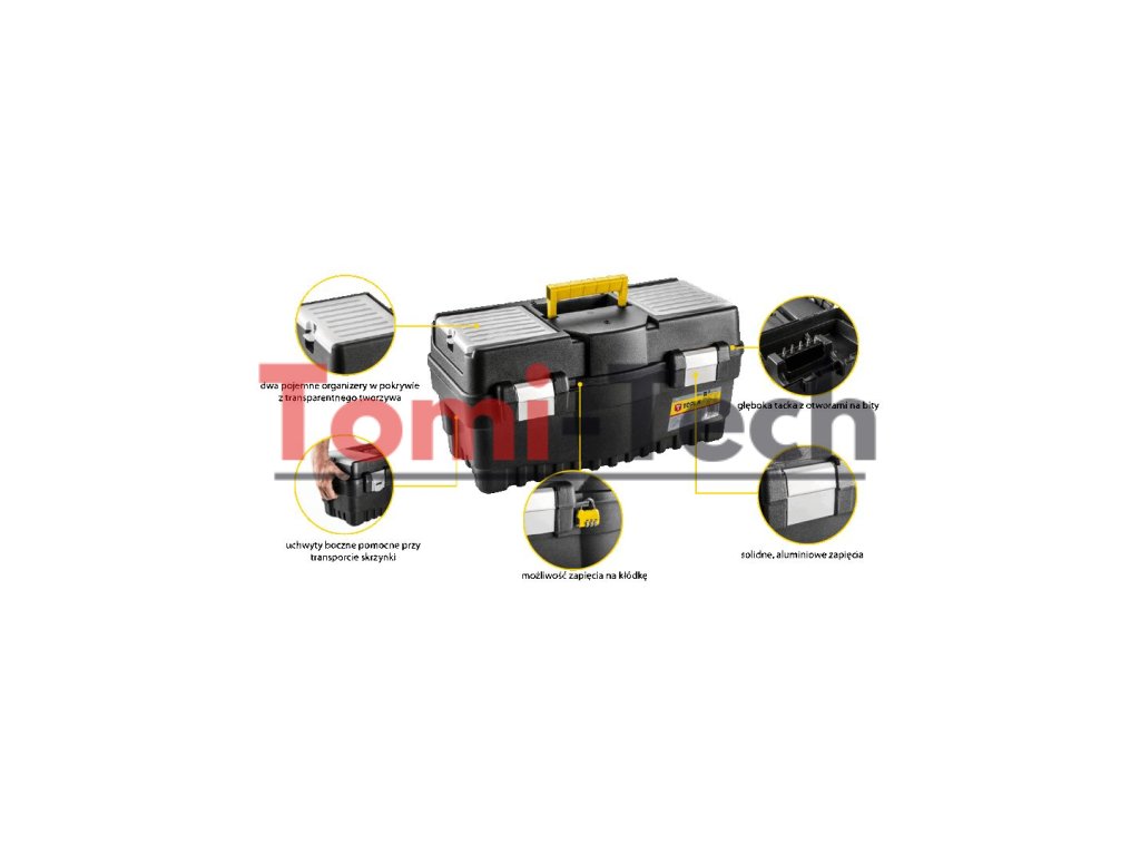 22" box na náradie, organizéry, nosič, hliníkové západky, plastová rukoväť, bočné rukoväteDodatočné parametre