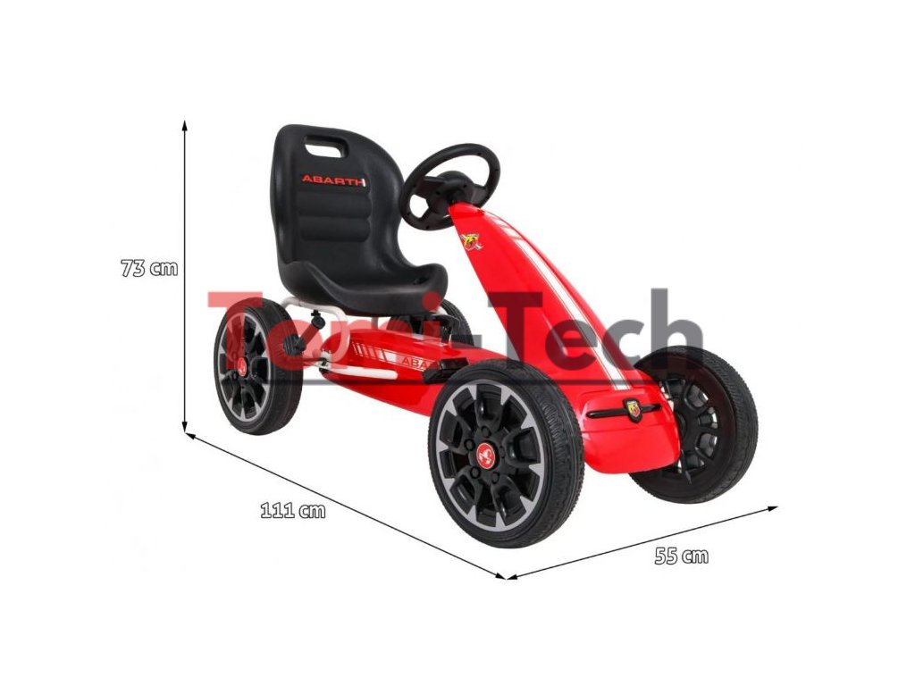 Detská šliapací motokára Abarth je veľmi kvalitne spracované detské šlapadlo v modernom dizajne. Precízne spracované kovová konštrukcia v kombinácii s kvalitným plastom zaručujú, že motokára nie je jedno sezónnou záležitosťou. Pre bezpečie dieťaťa je súčasťou funkčná ručná brzda a na zdravie dohliada aj vysoká opierka ergonomicky tvarovaného sedadla. Sedadlo sa dá tiež nastaviť podľa pohodlia Vášho dieťaťa. Šlapadlo umožnuje dieťaťu jazdu vpred i vzad. Kolesá motokáry sú z mäkčeného gumového plastu EVA, tým je zaistená perfektná priľnavosť k povrchu. Detská šliapací motokára je výbornou formou pohybu pre deti. Vďaka ľudskému pohonu je šetrná k životnému prostrediu a je nehlučná.