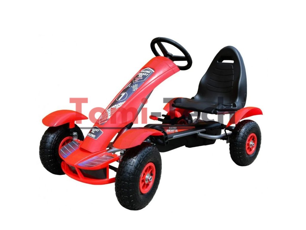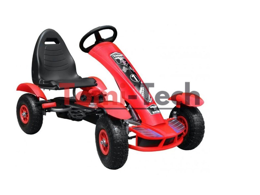 Bezpečná a pohodlná detská motokára na, ktoré Vaše dieťa bude v priebehu jazdy praktizovať svoj pocit rovnováhy a celkovú motorickú koordináciu. Špeciálne navrhnutý rám a plošina robí toto vozidlo vhodné pre deti od 3 rokov. Vďaka jedinečnému dizajnu a najkvalitnejším materiálom prispôsobeným veku jazdcov si môžete byť istí bezpečnosťou vašich detí. Motokára má predovšetkým nafukovacie gumové kolesá, vďaka ktorým zažijete komfortnú jazdu. Motokára sa riadi pomocou protišmykových šlapiek ako na bicykli (pohon - reťaz). Motokára má ručnú brzdu na 2 kolá. Výhoda tiež nastaviteľnosti sedadlo s 3-úrovňovým polohy. Výrobok má európsky certifikát bezpečnosti CE.
