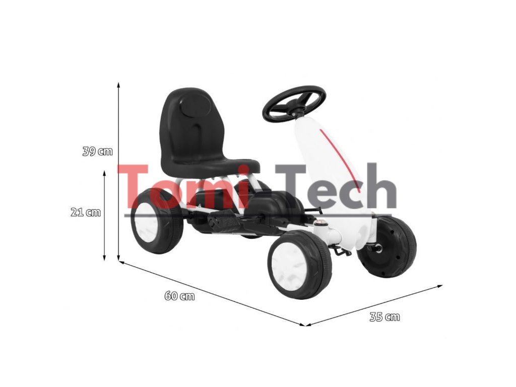 Detské šlapadlo v podobe motokáry je tým pravým spoločníkom pre rozvoj pohybu Vášho dieťaťa. Vďaka kolesám z tvrdého plastu dieťa môže jazdiť aj po terénoch, ktoré nie sú len hladké a rovné. Šlapadlo má ergonomicky tvarované a pohodlné sedadlo, takže dieťa dokáže jazdiť celý deň v úplnom pohodlí. Šlapadlo dieťa ovláda s pomocou športového volantu. Detská motokára funguje na šliapací pohon. Je bezmotorové, teda celkom nehlučná a nezaťažuje životné prostredie. Je to nová forma športové aktivity.