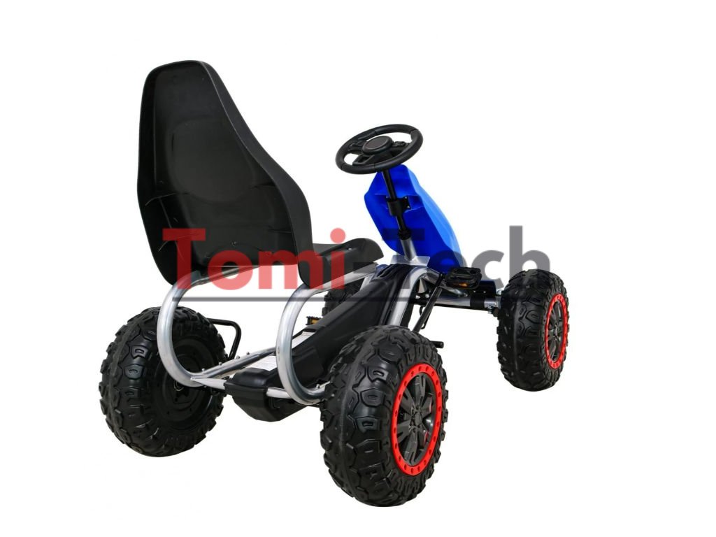 Detská šliapacia motokára je veľmi kvalitne spracované detské šliapadlo v modernom dizajne. Precízne spracovaná kovová konštrukcia v kombinácii s kvalitným plastom zaručujú, že motokára nie je jedno sezónne záležitosťou.Pre bezpečie dieťaťa je súčasťou funkčná ručná brzda a na zdravie dohliada aj vysoká opierka ergonomicky tvarovaného sedadla. Šlapadlo umožňuje dieťaťu jazdu vpred. Kolesá motokáry sú z Eva materiálu, tým je zaistená perfektná priľnavosť k povrchu . Detská šliapacia motokára je výbornou formou pohybu pre deti.