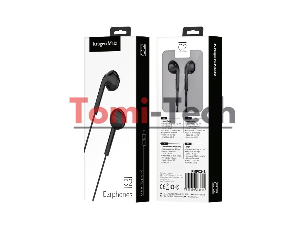 Slúchadlá do uší Kruger&Matz C2 USB-C s mikrofónom, čierne