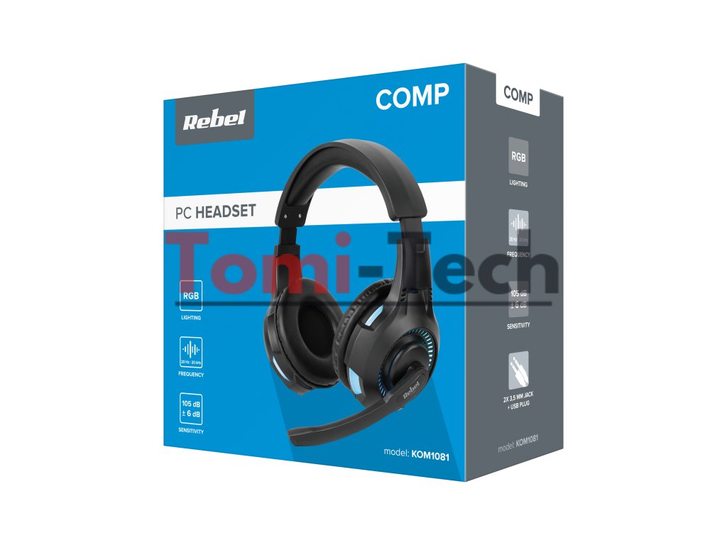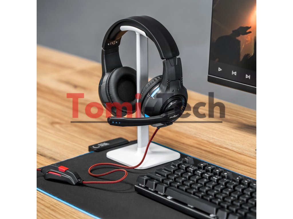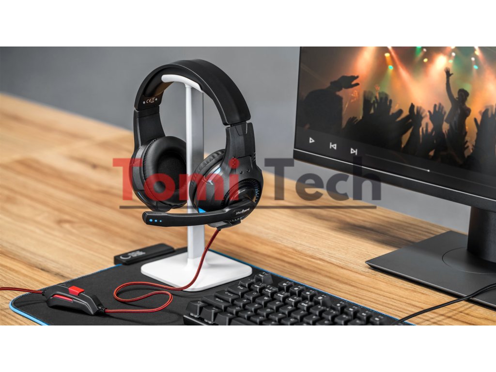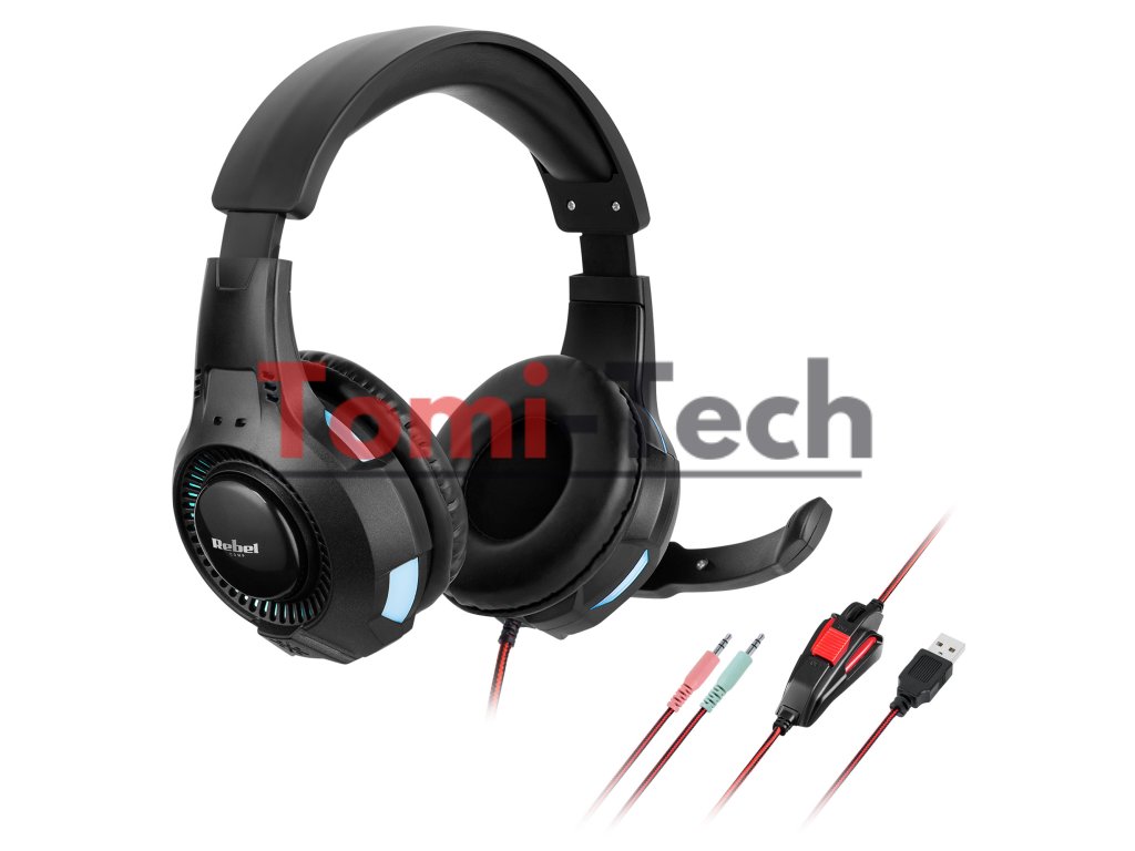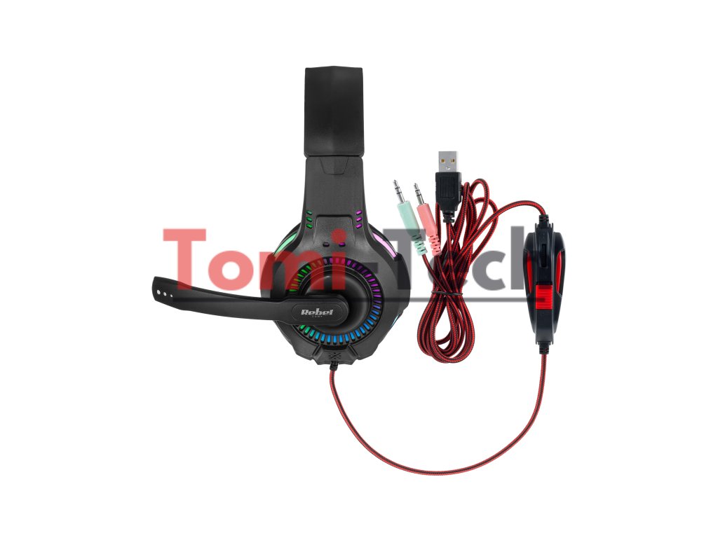 Káblové slúchadlá Rebel GH-20 s mikrofónom sa vyznačujú moderným dizajnom a pohodlím. Náušníky a nastaviteľný hlavový most sú po celom povrchu potiahnuté mäkkou ekokožou, čo zaručuje vysoké pohodlie aj počas dlhých hodín strávených hraním. Okrem toho, RGB podsvietenie dodáva herný nádych a priťahuje pozornosť.