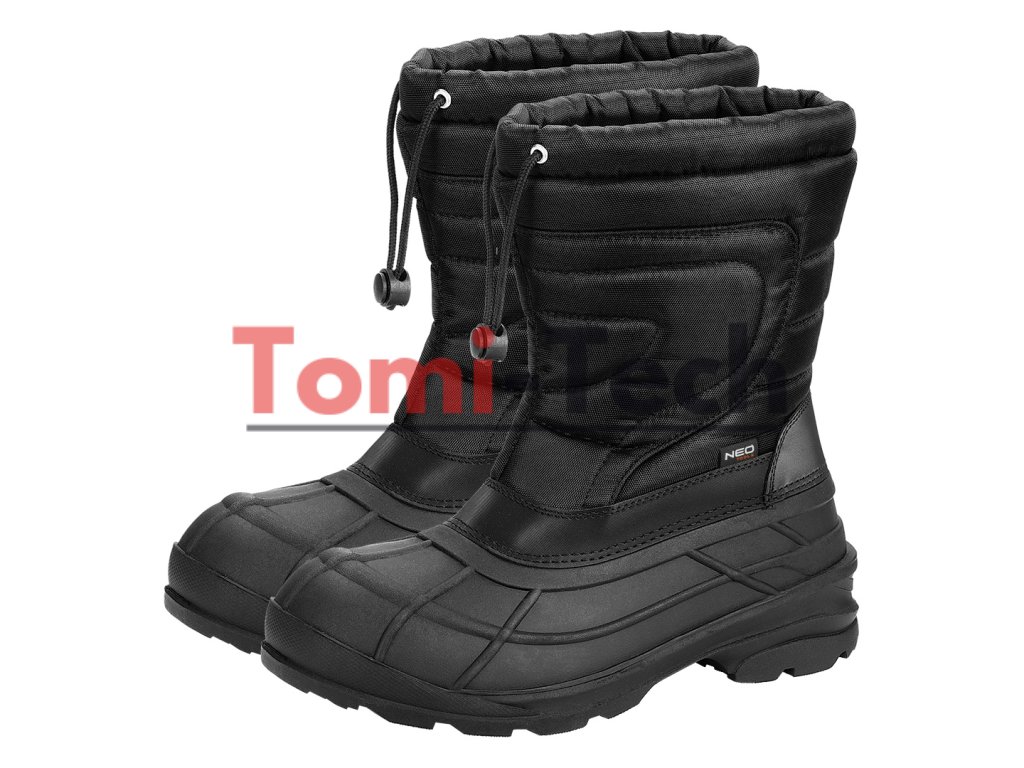Pánske nazúvacie snehule, polyesterová tkanina a TPR guma, zateplené, špeciálna konštrukcia pre jednoduché nasadenie chodidla, zvršok zakončený sťahovacou šnúrkou s obmedzovačom pre nastavenie obvodu, odolné voči snehu a vode, protišmyková podrážka, veľkosť 41Dodatočné parametre