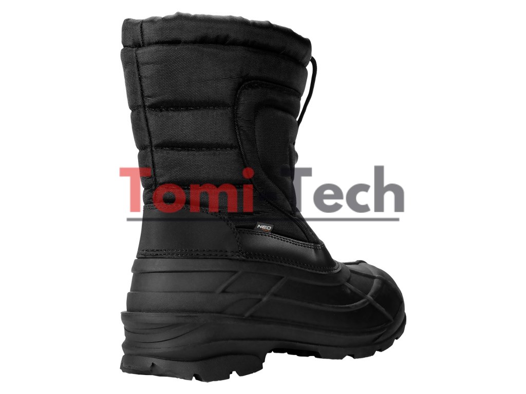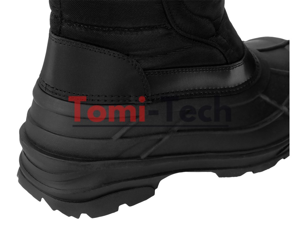 Pánske nazúvacie snehule, polyesterová tkanina a TPR guma, zateplené, špeciálna konštrukcia pre jednoduché nasadenie chodidla, zvršok zakončený sťahovacou šnúrkou s obmedzovačom pre nastavenie obvodu, odolné voči snehu a vode, protišmyková podrážka, veľkosť 42Dodatočné parametre