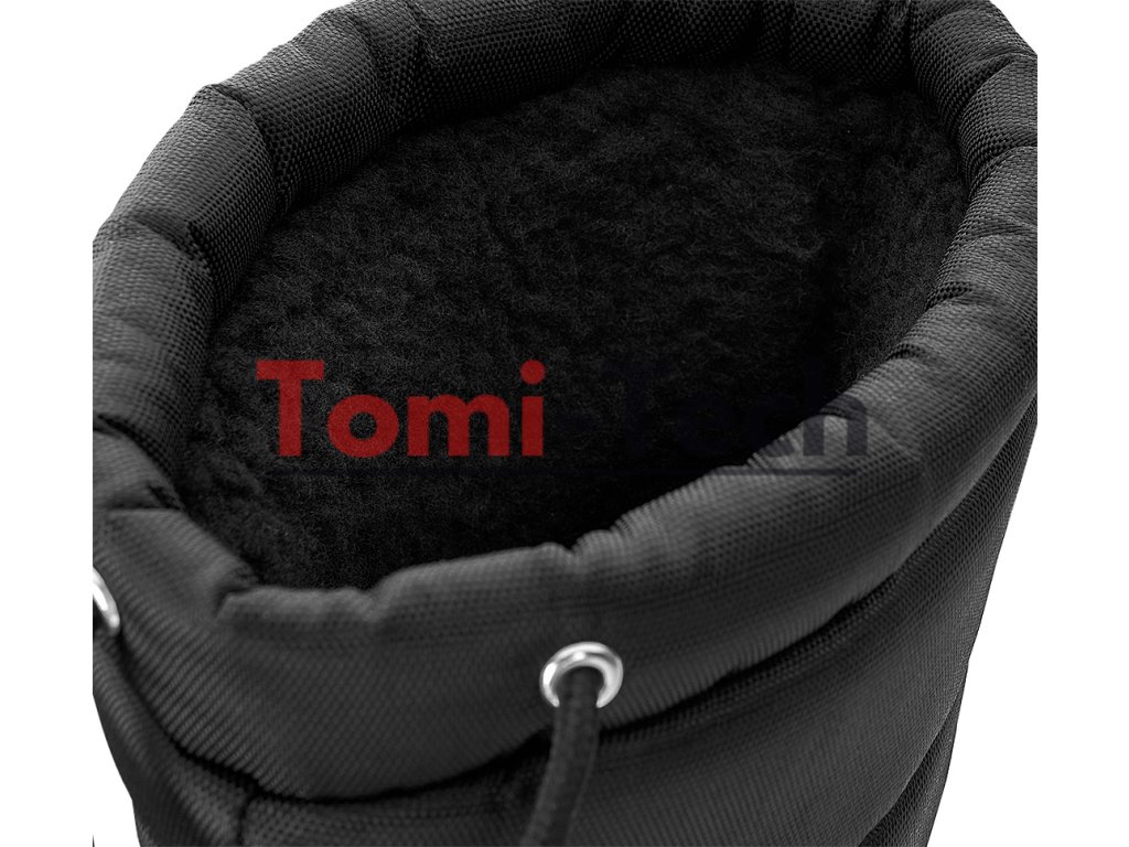 Pánske nazúvacie snehule, polyesterová tkanina a TPR guma, zateplené, špeciálna konštrukcia pre jednoduché nasadenie chodidla, zvršok zakončený sťahovacou šnúrkou s obmedzovačom pre nastavenie obvodu, odolné voči snehu a vode, protišmyková podrážka, veľkosť 43Dodatočné parametre