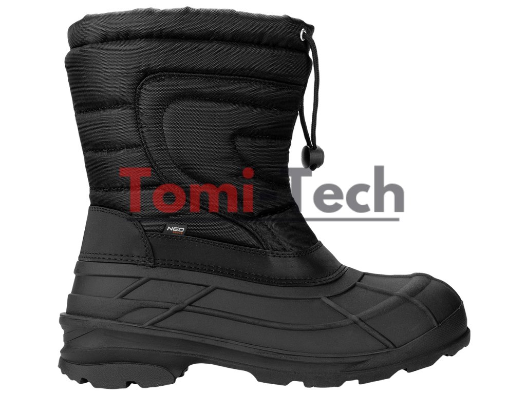 Pánske nazúvacie snehule, polyesterová tkanina a TPR guma, zateplené, špeciálna konštrukcia pre jednoduché nasadenie chodidla, zvršok zakončený sťahovacou šnúrkou s obmedzovačom pre nastavenie obvodu, odolné voči snehu a vode, protišmyková podrážka, veľkosť 45Dodatočné parametre