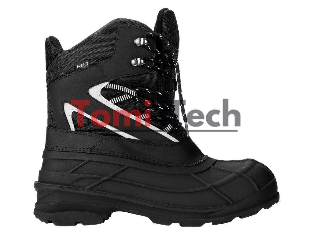 Pánske snehule s reflexnými prvkami, ekokoža, polyesterová tkanina a TPR guma, zateplené, reflexné prvky, pevné a odolné šnúrky s reflexnou niťou, odolné voči snehu a vode, protišmyková podrážka, veľkosť 45Dodatočné parametre