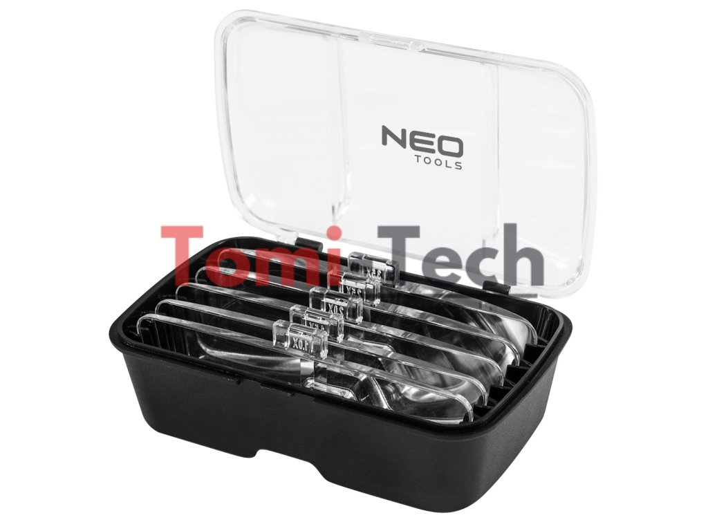 Zväčšovacie šošovky, plastové telo, mechanizmus na nastavenie veľkosti hlavy, 2x LED, 2x AAA batérie, 5 šošoviek, dioptrie 1,0, 1,5, 2,0, 2,5, 3,5, krabička na šošovkyDodatočné parametre