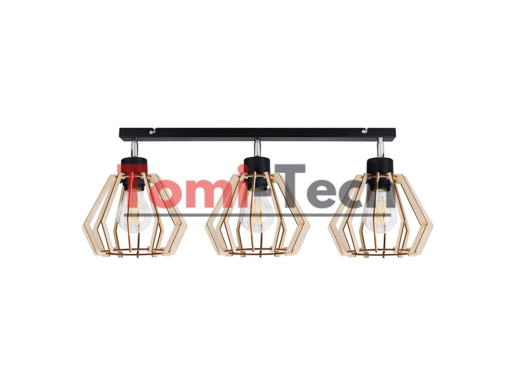 Nástenno-stropné svietidlo SOLIN, max. výkon 3x60W, E27, čierne, drevo