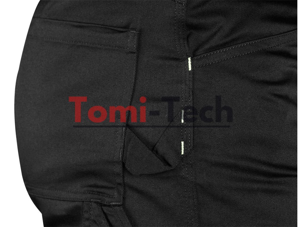 Pracovné nohavice s vysokou viditeľnosťou, čierno-žlté, veľkosť S, zloženie materiálu: 58 % bavlna, 40 % polyester, 2 % elastan, gramáž: 240 g/m2, prvá trieda viditeľnosti podľa EN ISO 20471:2013, trojité šitie, vrecko na chrániče kolien, pútka na náradie, reflexná potlač nad kolenom, multifunkčné vrecká, predtvarované kolená, identifikačná vložka, certifikát CE podľa EN ISO 13688:2013Dodatočné parametre