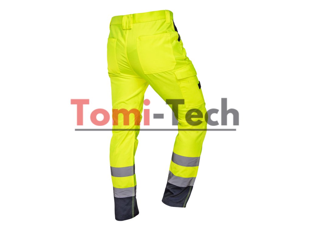 Reflexné nohavice 40 % polyester, 60 % bavlna, 260 g/m², veľkosť XXXL, trieda vysokej viditeľnosti 1, našité reflexné pruhy, trojité prešitie švov nohavíc (vonkajší a vnútorný šev), tvarované kolená, tmavšie prvky v spodnej časti nohavíc a pri vreckách, pútko na náradie, dve zadné vrecká a ďalšie vrecko na nohavici, vnútorná menovka, certifikát CEDodatočné parametre