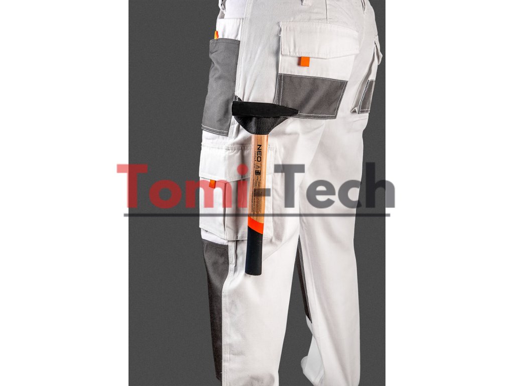 Pracovné nohavice, biele, veľkosť M/50, 35 % bavlna, 65 % polyester, 267 g/m2, výstuhy z oxfordskej tkaniny, vystužené vrecká, trojité šitie, vloženie chráničov kolien, CE, EN ISO 13688:2013Dodatočné parametre